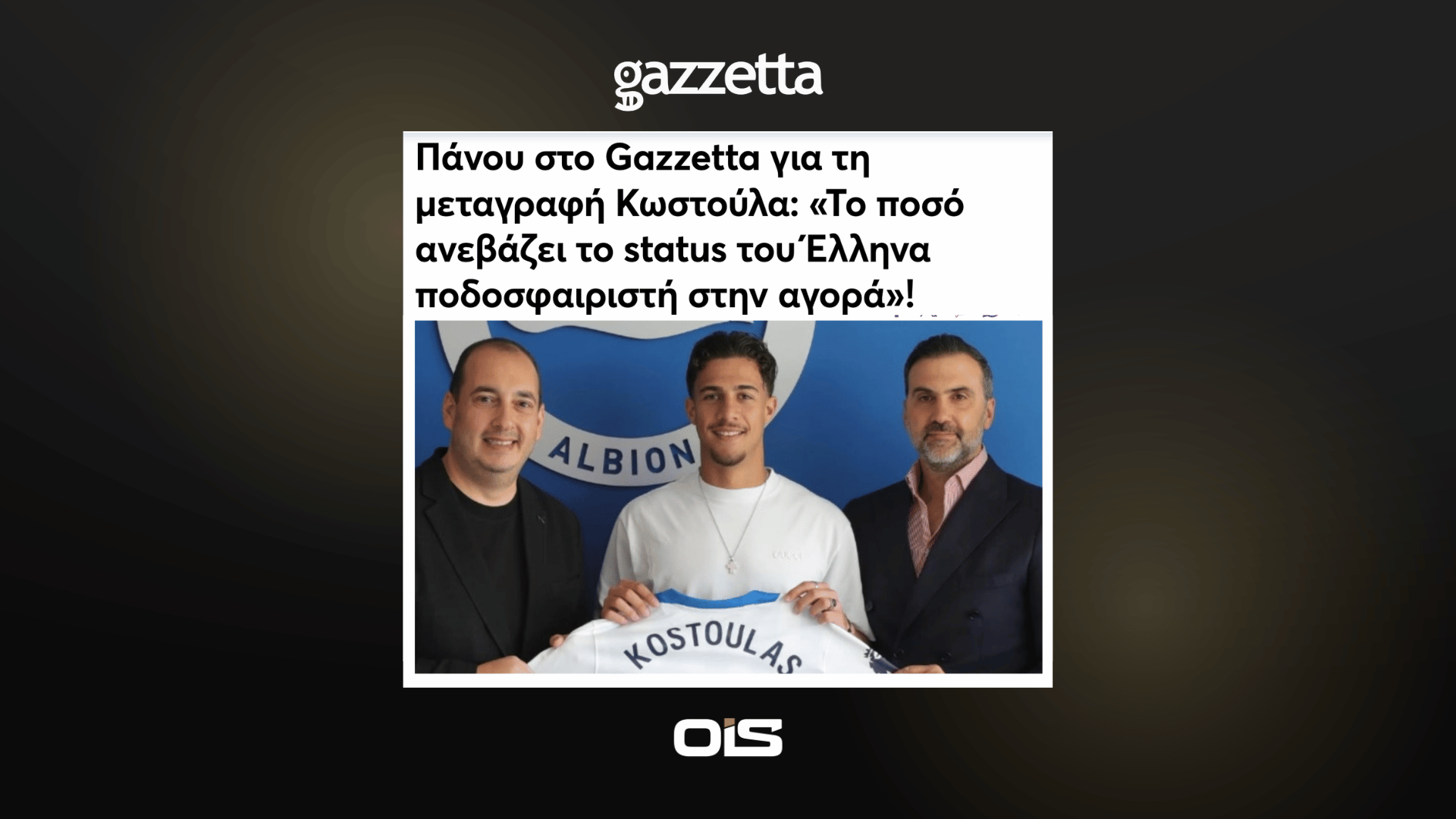 The agency behind the record transfer of Babis Kostoulas, the highest fee ever received by a Greek club and which made him the most expensive Greek player ever.